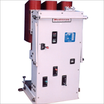 "MEDITRON" make Indoor type VACUUM CIRCUIT BREAKERS are suitable for use up to 12KV. Current Rating up to 1250 amps and interrupting current up to 26.3 KA. The Circuit Breakers are fitted with Crompton Greaves Vacuum Interrupters. For ease of operation, the breaker carriage is of horizontal isolation, horizontal withdrawal type.